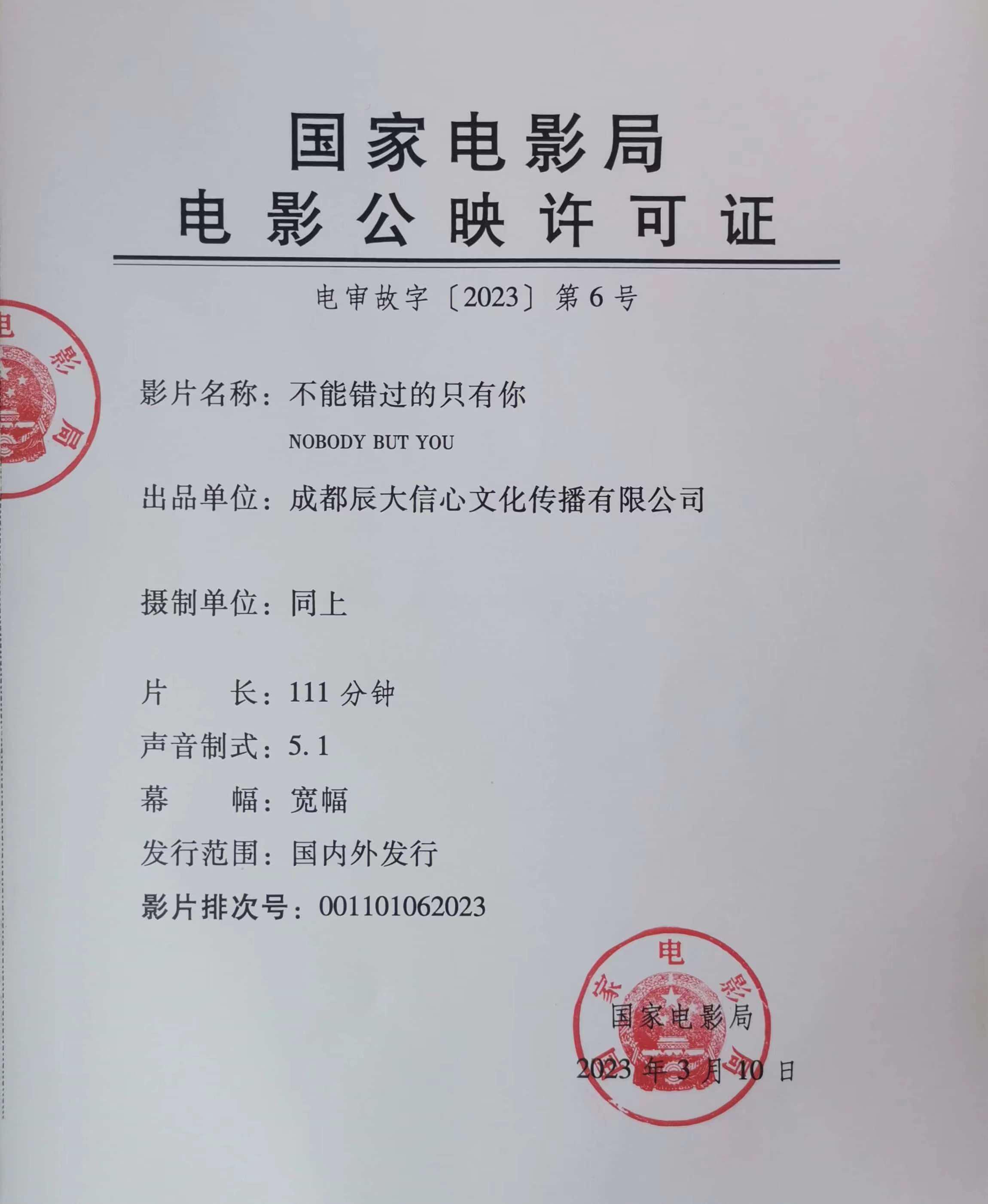 《不能错过的只有你》变更排次号的通知
