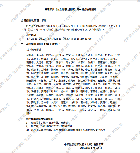 《九龙城寨之围城》二轮点映的通知