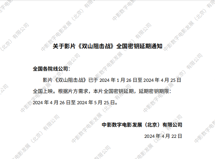 《双山阻击战》全国密钥延期的通知