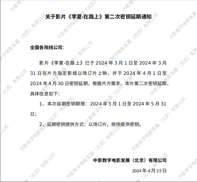 《李夏·在路上》第九次全国密钥延期的通知