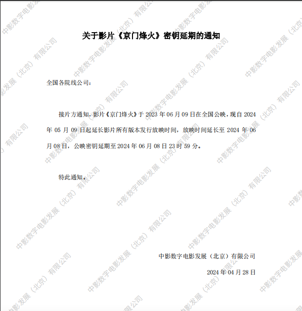 《京门烽火》密钥延期的通知