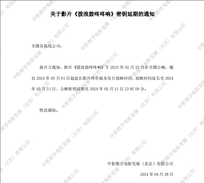 《拨浪鼓咚咚响》第三十二次密钥延期的通知