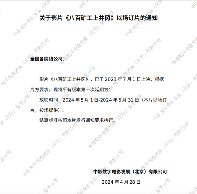 发行通知 » 《八百旷工上井冈》第十次以场订片的通知