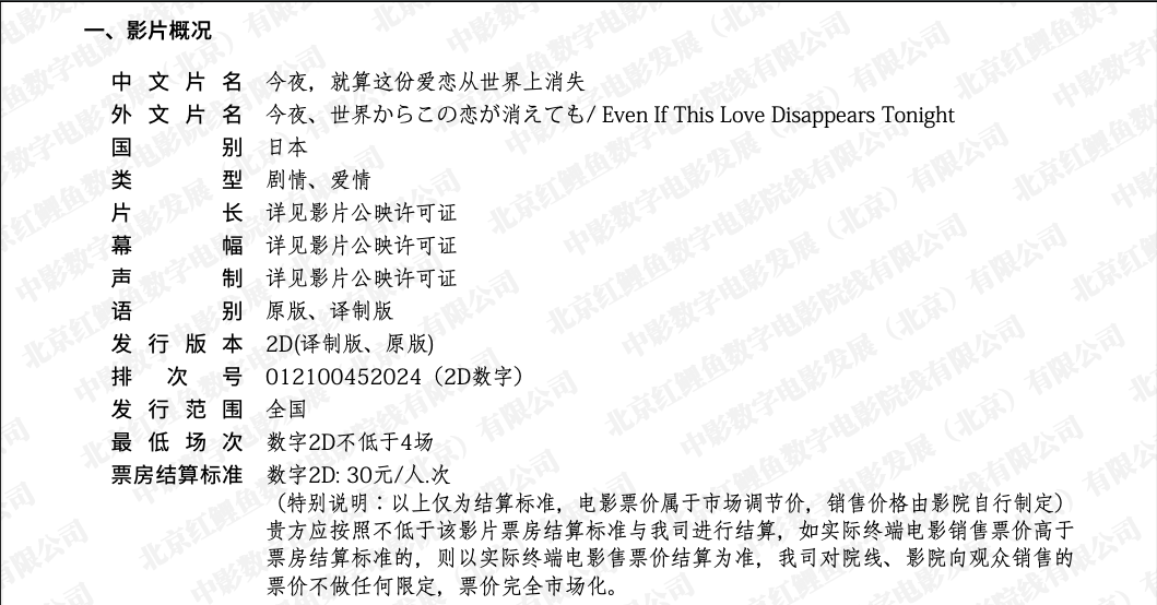 《今夜,就算这份爱恋从世界上消失》点映的通知