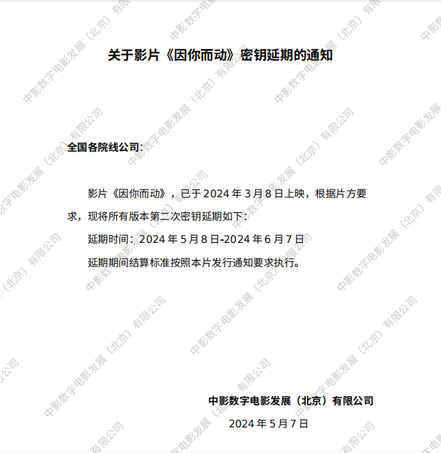 《因你而动》密钥延期的通知
