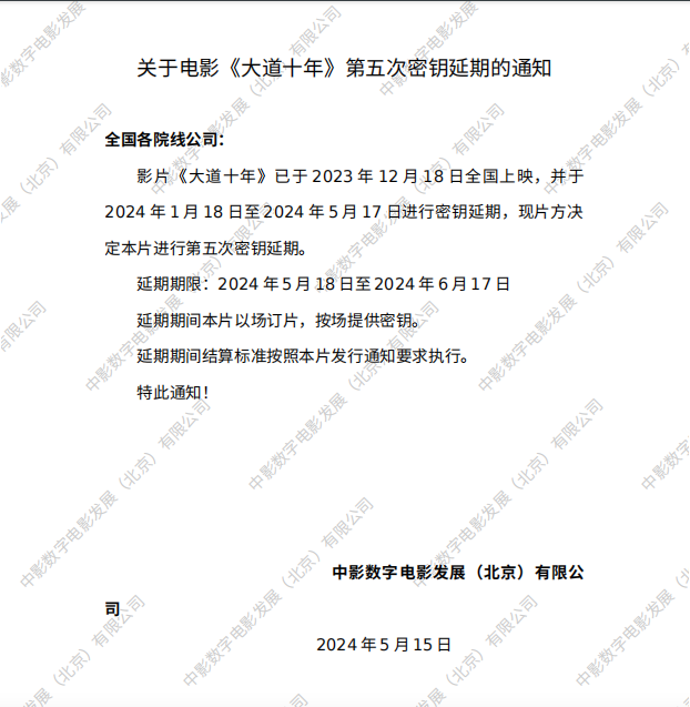 《大道十年》第四次密钥延期的通知