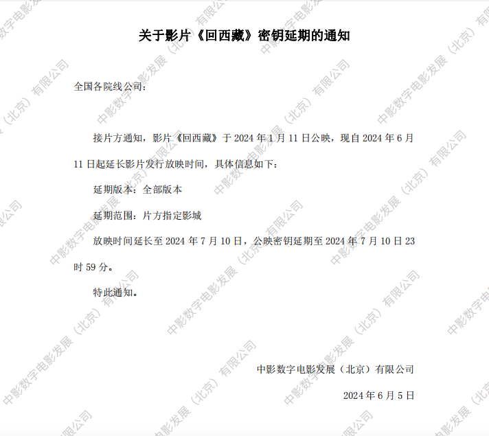 《回西藏》第六次密钥延期的通知