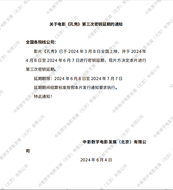 《孔秀》第四次密钥延期的通知