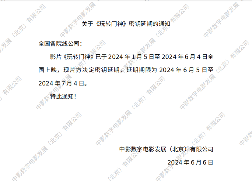 《玩转门神》第六次密钥延期的通知