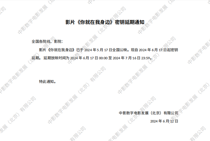 《你就在我身边》第二次密钥延期的通知