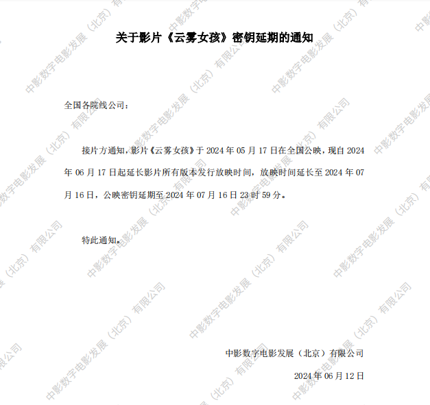《云雾女孩》发行通知