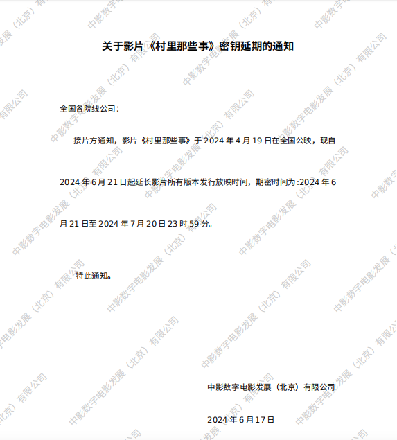 关于影片《村里那些事》三次密钥延期的通知