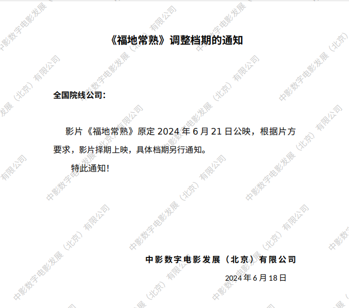 发行通知 » 《福地常熟》调整档期的通知