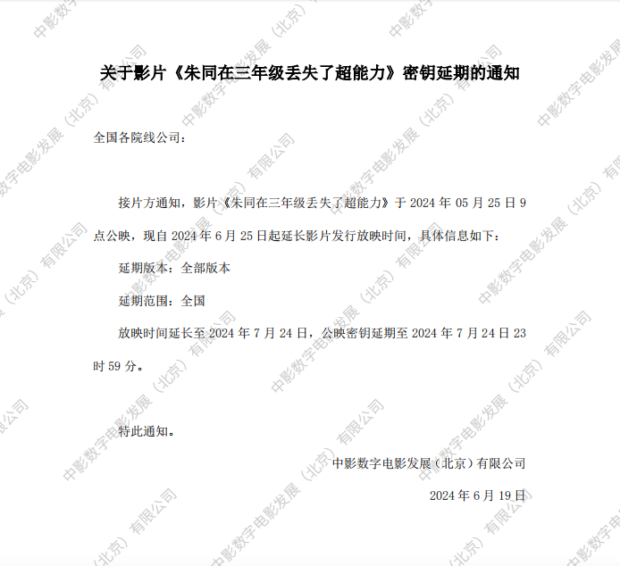 《朱同在三年级丢失了超能力》密钥延期的通知