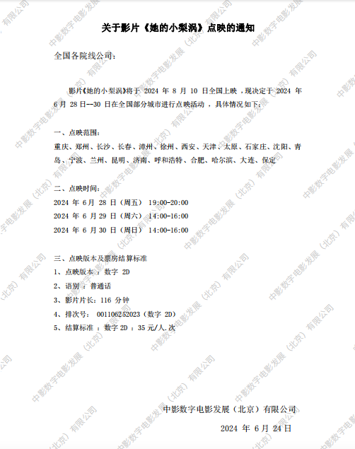 《她的小梨涡》第四轮全国点映的通知
