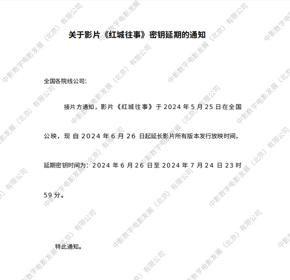 发行通知 » 《红城往事》密钥延期的通知