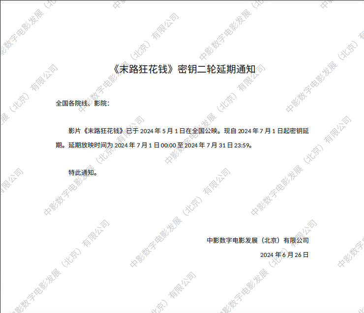 《末路狂花钱》密钥延期的通知