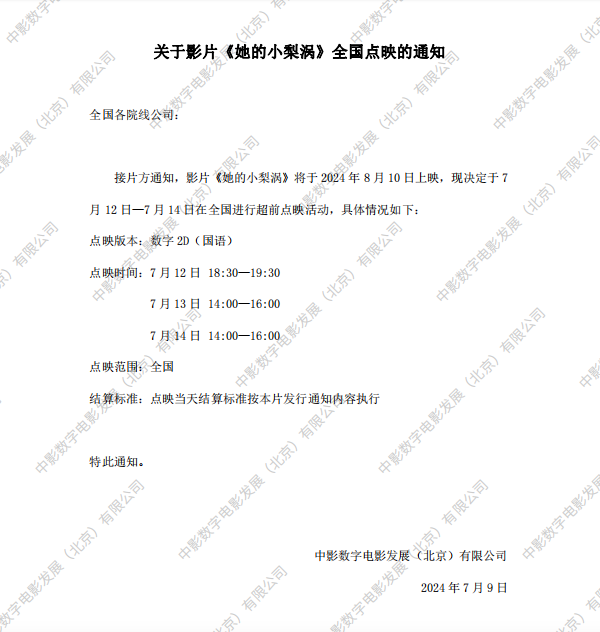 《她的小梨涡》第四轮全国点映的通知