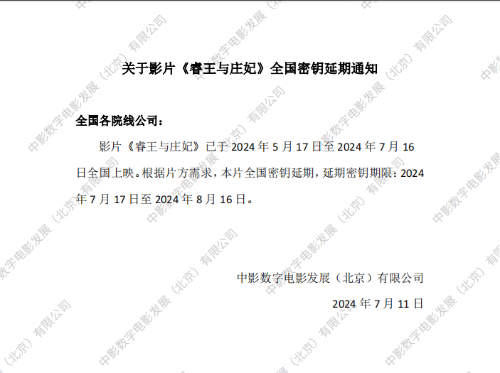 《睿王与庄妃》密钥延期的通知