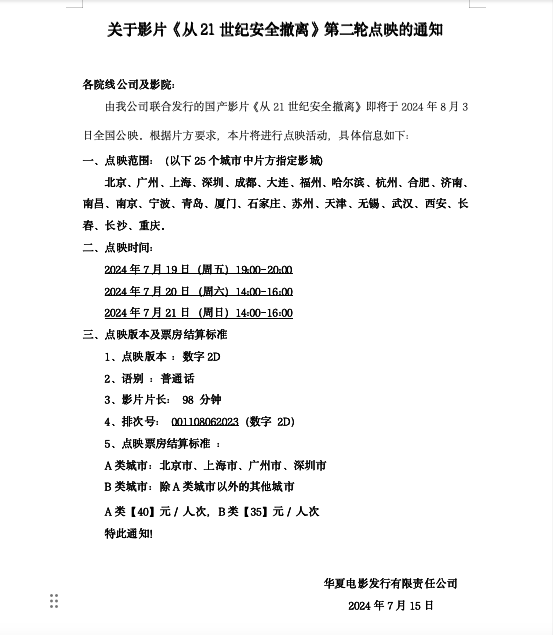 《从21世纪安全撤离》第五轮点映的通知