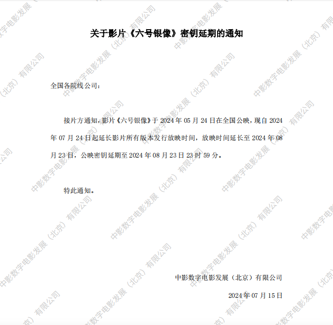 《六号银像》第三次密钥延期的通知