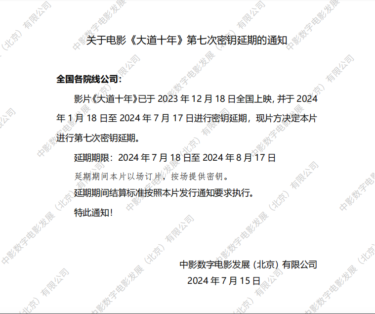 《大道十年》第八次密钥延期的通知