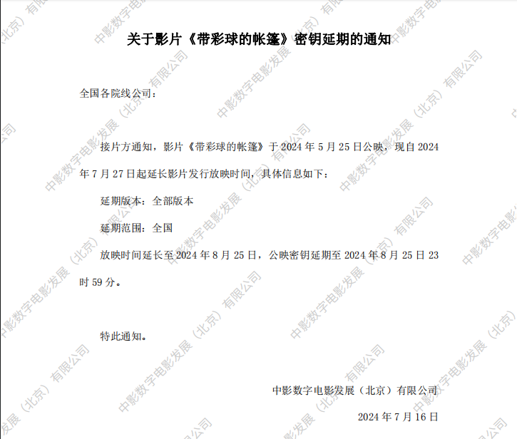 《带彩球的帐篷》第三次密钥延期的通知