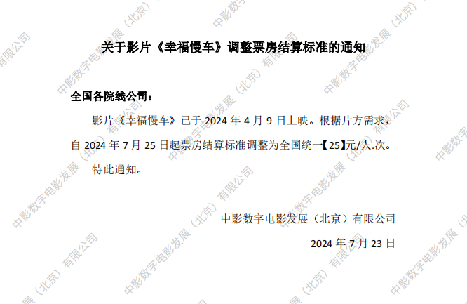 关于影片《幸福慢车》密钥延期的通知