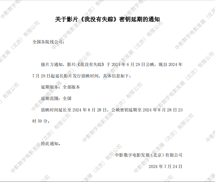 《我没有失踪》密钥延期的通知