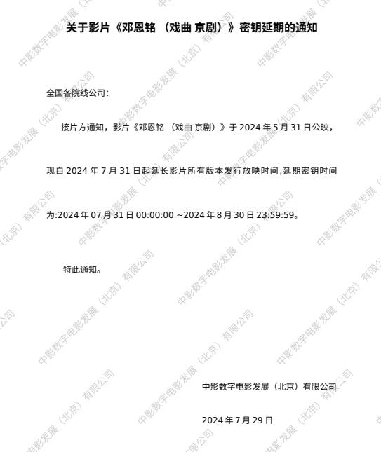关于影片《夜王》密钥延期的通知