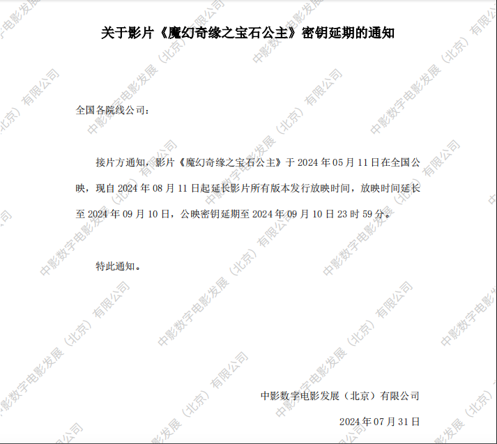 《魔幻奇缘之宝石公主》密钥延期的通知