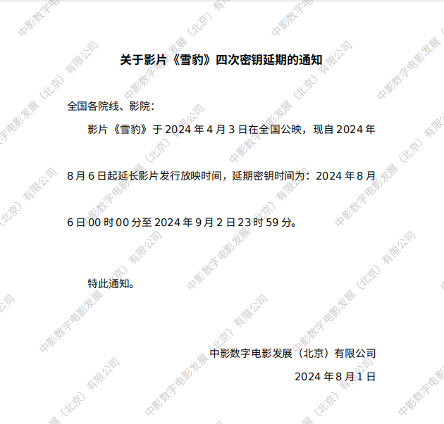 《雪豹》第十四次密钥延期的通知