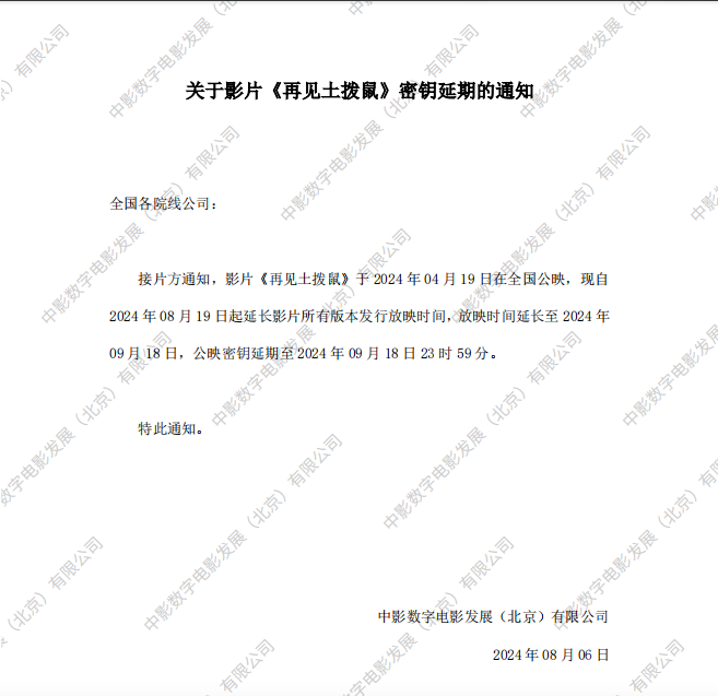《再见土拨鼠》调整票房结算标准的通知