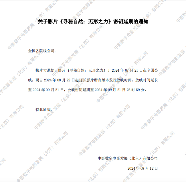 《寻秘自然:无形之力》调整票房结算标准的通知