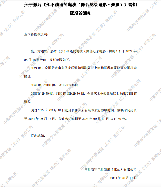 关于影片《夜王》密钥延期的通知