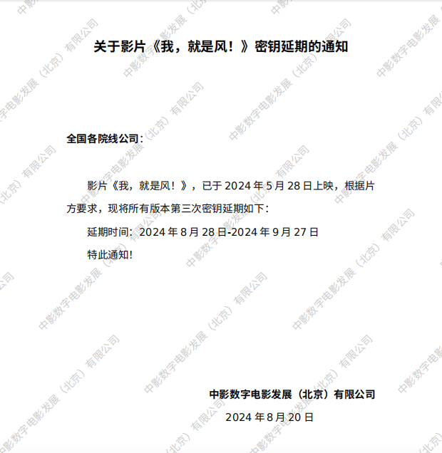 《我,就是风!》第十次密钥延期的通知