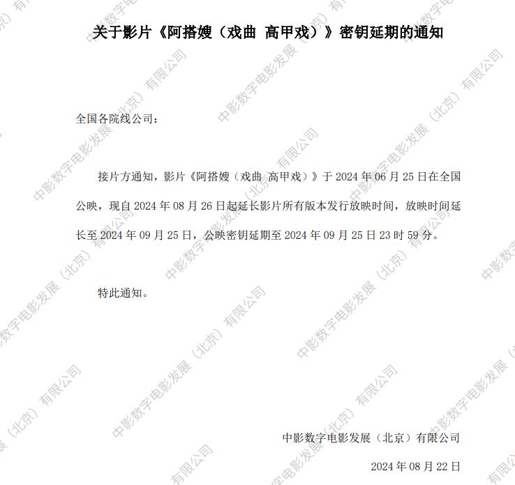 发行通知 » 关于影片《阿搭嫂(戏曲 高甲戏)》2次密钥延期的通知