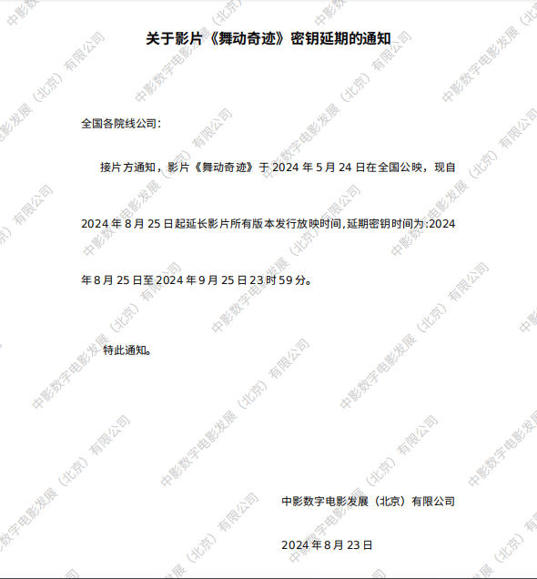 《舞动奇迹》密钥延期的通知