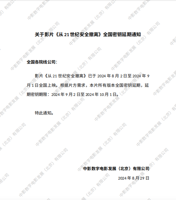 《从21世纪安全撤离》第五轮点映的通知