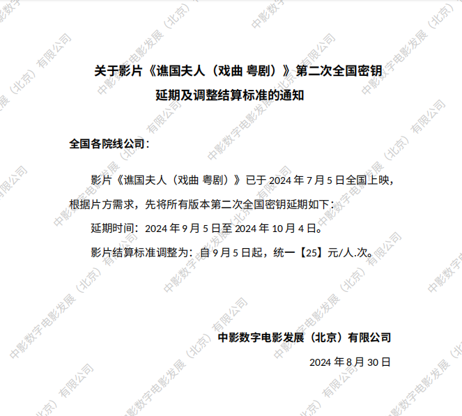 关于影片《夜王》密钥延期的通知