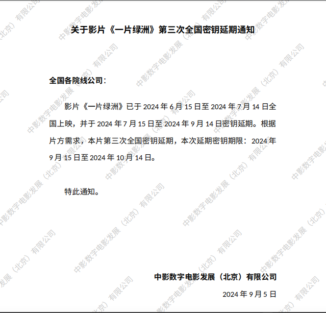 《一片绿洲》第五次全国密钥延期的通知