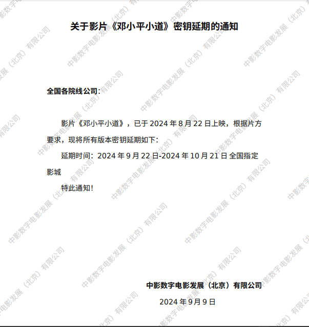 《邓小平小道》第二次密钥延期的通知