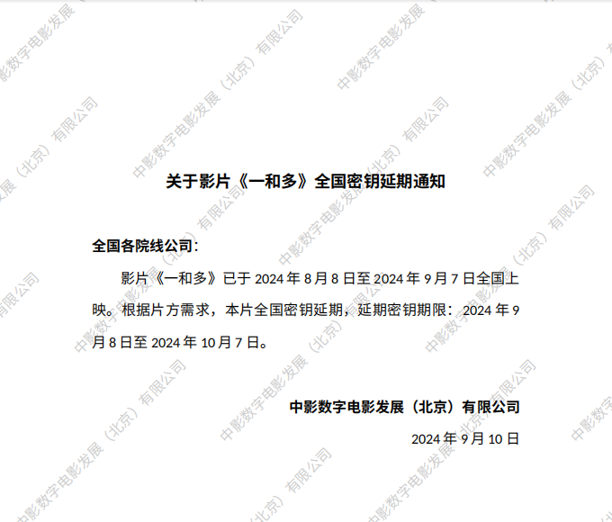 《一和多》第四次全国密钥延期的通知