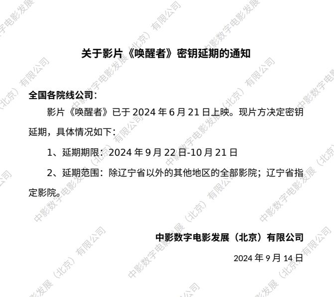关于影片《唤醒者》密钥延期的通知