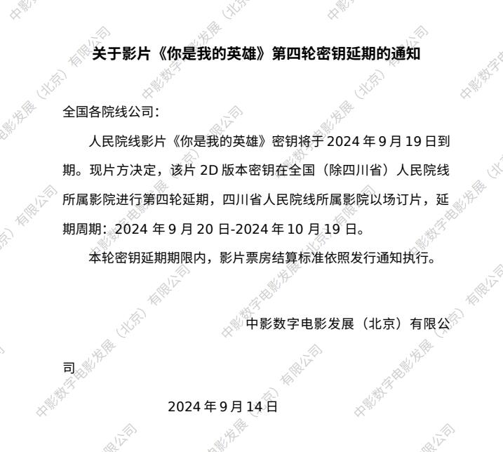 《你是我的英雄》第十四次密钥延期的通知