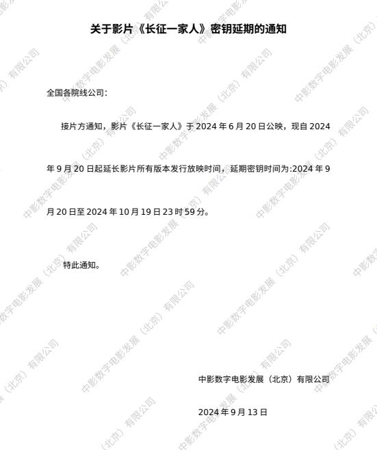 发行通知 » 关于影片《长征一家人》三次密钥延期的通知