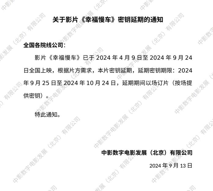 《幸福慢车》密钥延期的通知