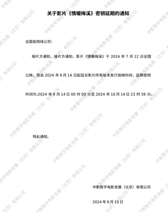 《情暖梅溪》密钥延期的通知