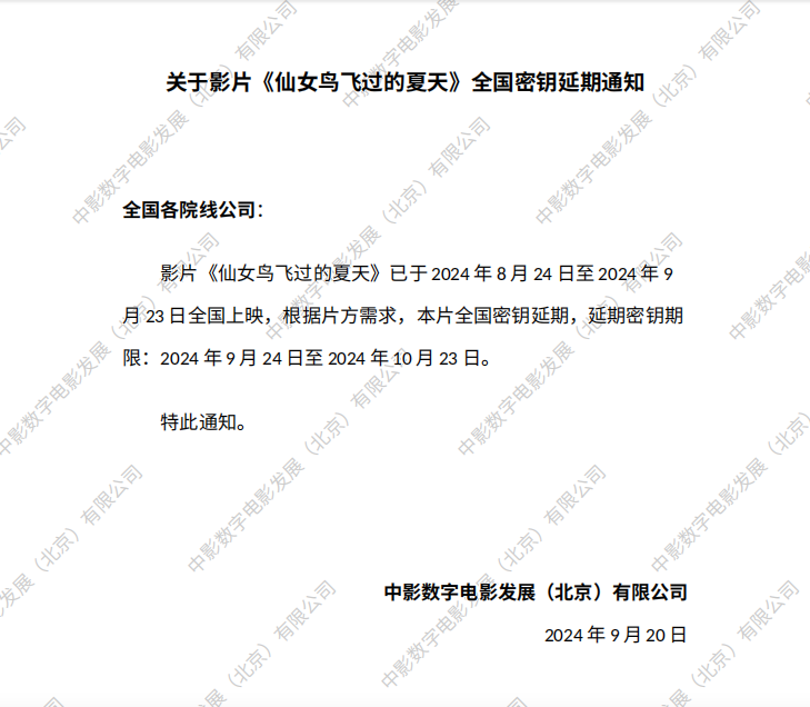 《仙女鸟飞过的夏天》第二次全国密钥延期的通知