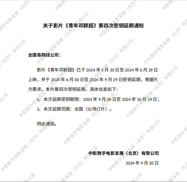 《青年邓颖超》第六次密钥延期的通知